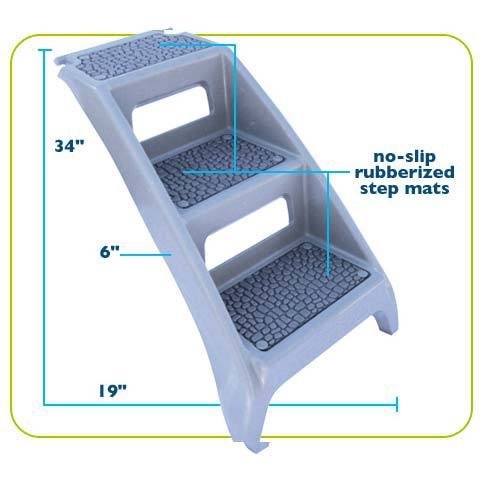 Booster Step 19"" x 6"" x 34"" - Give your dog a secure and comfortable path to high places with our quality multi use Booster Step. - Booster Step is very durable and works great when attached to the Mini and Large Booster Bath. Booster Step also works fantastic with your car door threshold, SUV bumper, couch and bed. Booster Step weighs only 4½ pounds however with its multiple rib system can easily support 150 lbs. The no-slip rubberized step mats insure your dog maintains secure footing. In addition there are four large rubber bumpers located on each corner of this wholesale bulk cheap discount booster step that insure Booster Step stays in place when your dog enters, or exits.