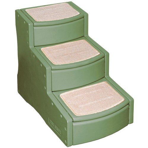 The Easy Step Pet Stair has wide, deep steps to give smaller dogs the ability to get their entire body on each platform and large dogs the ability to comfortably climb the stairs. The innovative incline of each step reduces the amount of stairs needed to climb eliminating stress on your pet. The carpet tread is easily removable and machine washable. The stair easily snaps together (no tools required). Item# PG9730SG Color: Sage Actual Dimensions of Product 25L x 16W x 23H Package Dimensions 24.2L x 26.4W x 4.3H Weight: 10 lbs For pets up to 150 lbs.